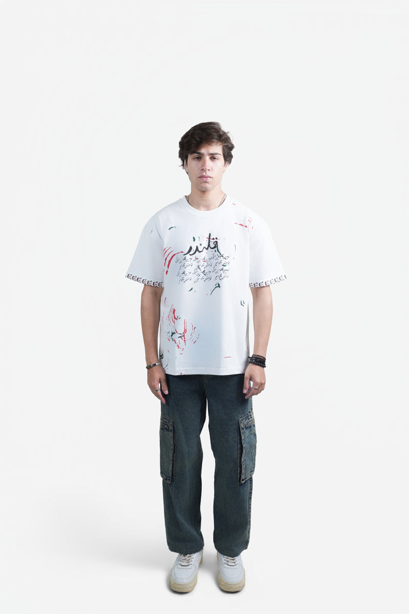 Manzil (منزل) Oversized T-Shirt in White represents the serene arrival at love’s destined place. Clean and contemplative, it’s a wearable expression of the journey’s end.